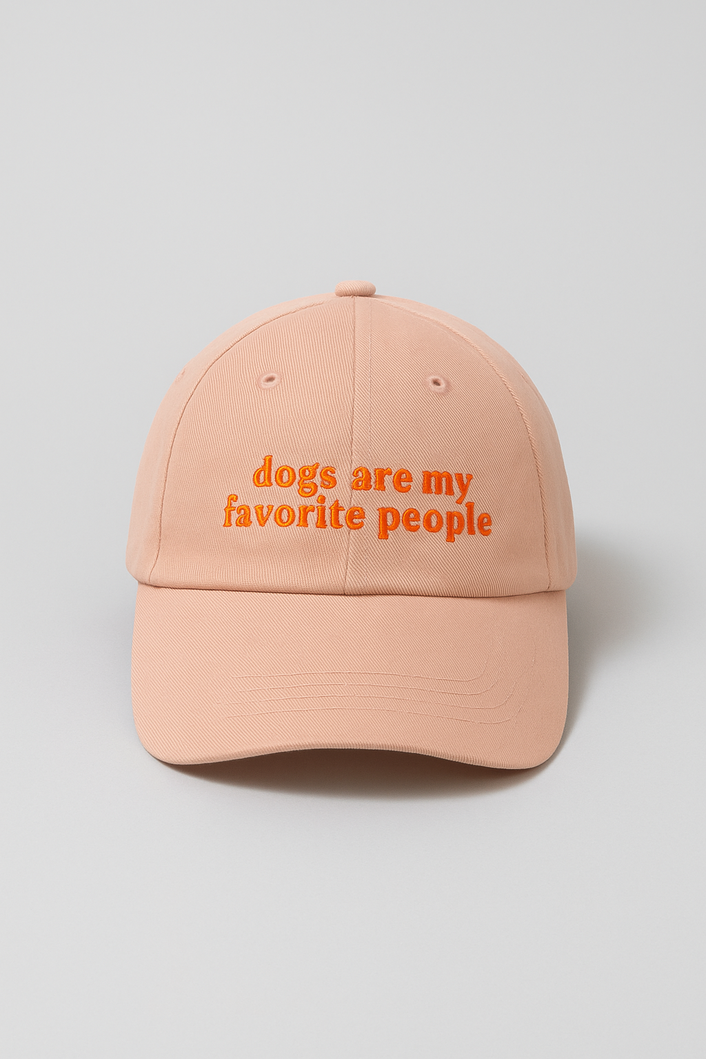Diseñada para verdaderos amantes de los perros, la gorra “Dogs Are My Favorite People” transmite con humor y cariño lo que muchos pensamos. Su color durazno y bordado naranja vibrante la hacen destacar, mientras mantiene un estilo moderno, tierno y relajado.